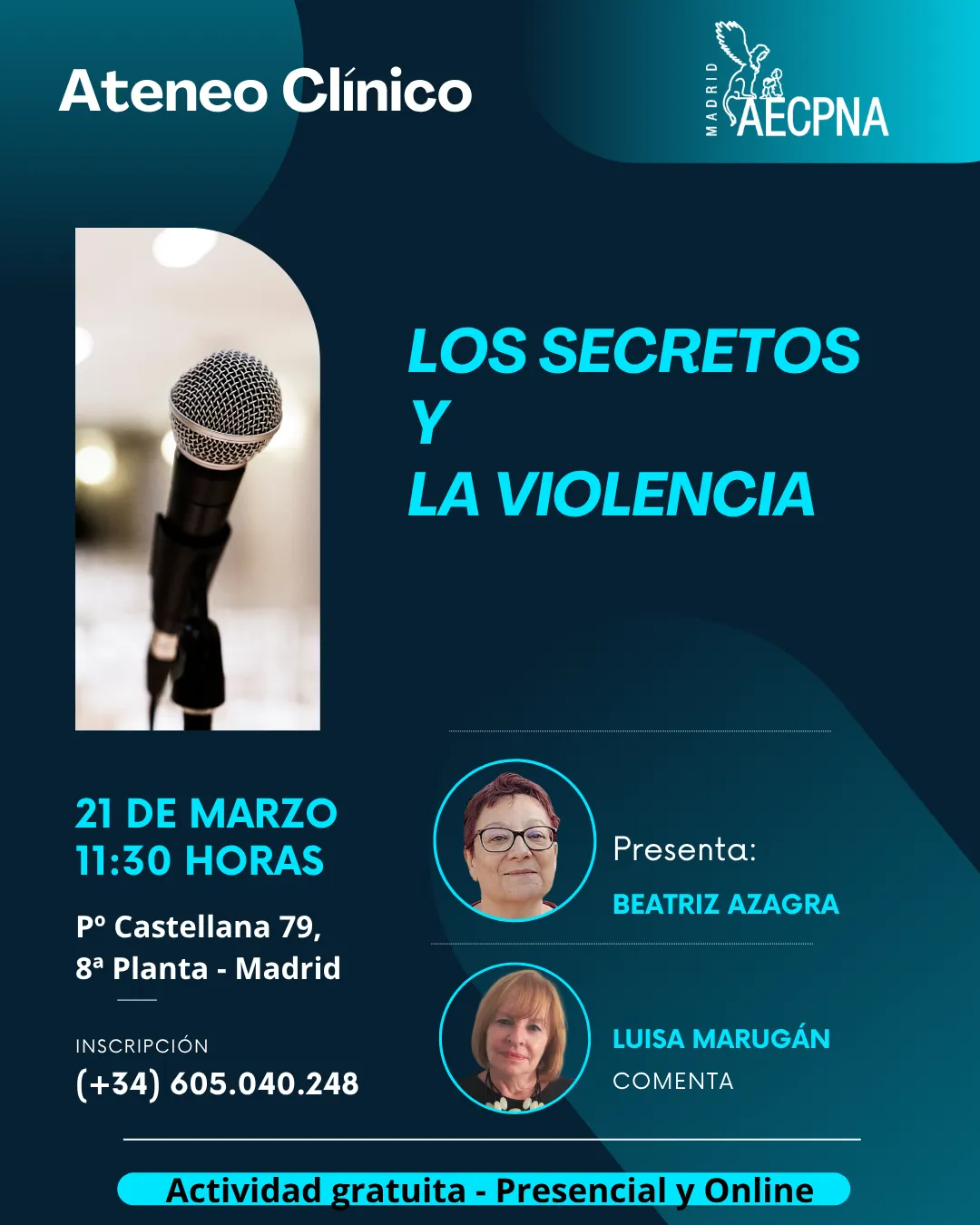 Los secretos y la violencia + Añadir Google Calendar + exportación iCal / Outlook 2019 © Todos los derechos reservados AECPNA